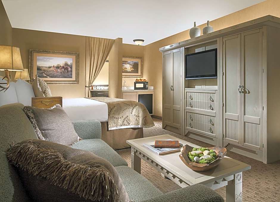 This suite features a seating area, tile/marble floor and sofa. A microwave and a refrigerator are also included.